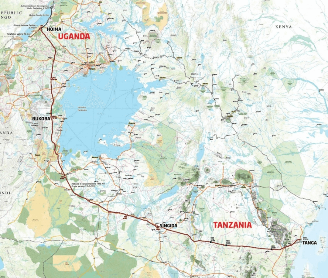 東非原油外輸管道(簡(jiǎn)稱EACOP)項(xiàng)目線路起點(diǎn)為烏干達(dá)Tilenga CPF(聯(lián)絡(luò)線起點(diǎn)),終點(diǎn)為坦桑尼亞坦噶港,全長(zhǎng)1500公里,是世界上最長(zhǎng)的加熱原油管道項(xiàng)目。工程包括線路、泵站、減壓站、閥室、電伴熱站等相關(guān)配套設(shè)施。